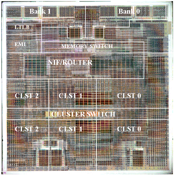 and 3D-Mesh Router; and 4KWords of software managed on-chip memory.
